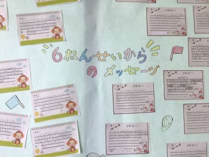 6年生が、下級生や先生、ボランティアさんにメッセージをくれました。