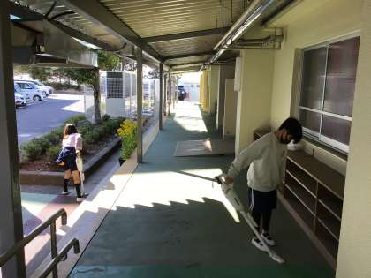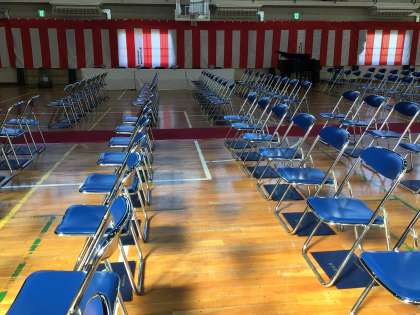 体育館周りの清掃や、赤じゅうたんの準備、イス並べなど、率先して動く姿に、頼もしさを感じました。