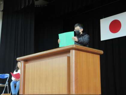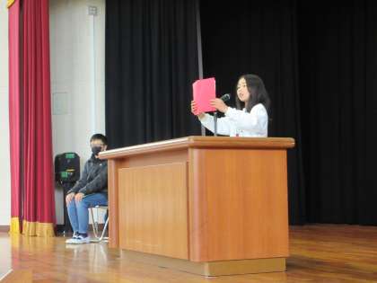式の中で、代表児童のスピーチを行いました。