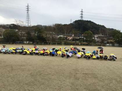下校時刻のころには、あいにくの雨となってしまいましたので、1年生には初めての「傘さし下校」となりました。