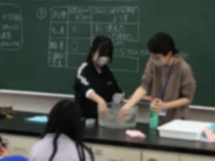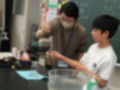 本来は、グループごとに実験をやる予定でしたが、インフルエンザの感染予防のため、代表での実験をみんなで観察する形となりました。ろうそくをビンの中に入れるところを、食い入るように見て、予想通りになった班は、歓声を上げていました。