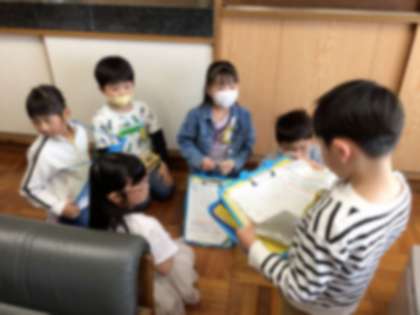 1年生の教室ではじめの会を行い、探検のやり方と約束事の確認をし、2年生が立てた計画にそって各班で校内を回りました。校長室、職員室、調理室、音楽室などを回り、それぞれの場所で1年生に部屋の説明をしてくれました。1年生の手をしっかりと握って案内する2年生の姿は、立派なお姉さん、お兄さんという感じでした。