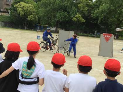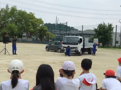 子どもたちは、さまざまな事故の実演を間近で見て事故の怖さを感じるとともに、下校後の生活の中でも「止まれ」の標識のある場所では、しっかりと止まって左右前後を確認する、停車してい車の横を通るときは、スピードを落として安全確認をするなど、事故にあわないように注意したいという気持ちを強くもったようです。