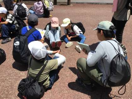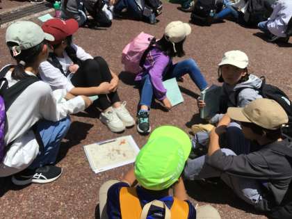 班ごとにスタートして、地図を見て自然の中を歩きながら、ポイントをゲットします。暑さはあるものの、さわやかな風があり、気持ちよく活動していました。