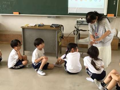1年生が、ALTの先生と一緒に外国語活動を行いました。