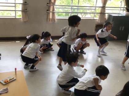 今日は、歌に合わせて、1から7までの数字を英語を覚えました。リズムよく歌うだけでなく、自分に割り振られた数字のときには、英語の歌に合わせてジャンプもしました。ジャンプのタイミングをはかるために、英語でどの数字を言われるかを真剣な顔で聞いていました。自分の数字が出てくると、張り切ってジャンプしていて、とても楽しそうでした。