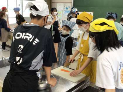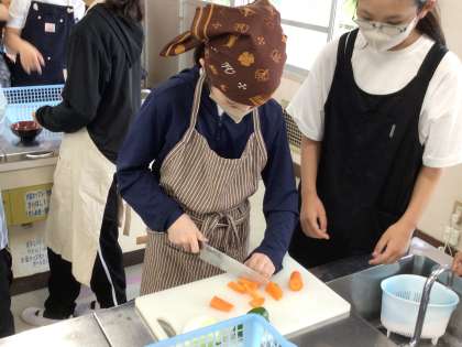 調理実習で「いろどりいため」を作っていました。