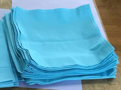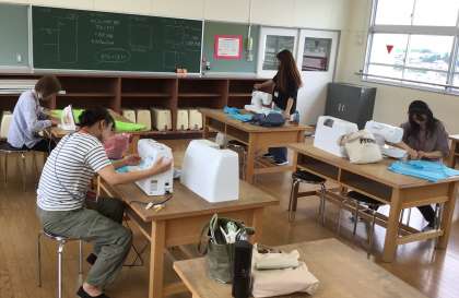 4人のボランティアさんが、スポフェスの旗たいそう用の旗づくりに来てくださいました。アイロンをかけて、手際よくミシンをかけ、たくさんの旗を作ってくださっています。いつも、ありがとうございます。