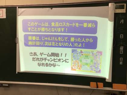 賞味期限と消費期限について学習したあと、グループごとに食品ロスゼロをめざした「すごろくゲーム」を行いました。ゲームをしたり動画を見たりして、楽しみながら食品ロスについて学習することができました。