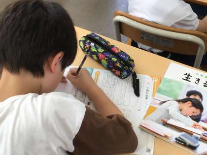 7/8 4-2 道徳 公開日 2025/07/08 更新日 2025/07/08 校長室から 「雨のバスていりゅう所で」の教材で、きまりを守ることについて考えました。 思わず一番にバスに乗ろうとした主人公の気持ちや、一緒にいたお母さんの表情について話し合っていました。
