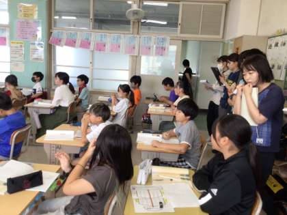 5年生は、教材文「注文の多い料理店」を使って、物語のおもしろさを伝える学習をしています。今日の授業では、二人の紳士の姿を手がかりに、結末に込められた作者の思いを考えました。教科書の文章や表現から、まずは自分で考え、ペアやグループで考えを広げたあと、全体で発表し合っていました。物語の結末に込められた思いについても、読み取ったことや表現を根拠にして、しっかりとした自分の考えを発表することができました。