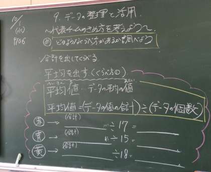 代表チームを決めるために、平均値を出して比較しようと学習に取り組んでいました。