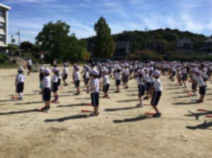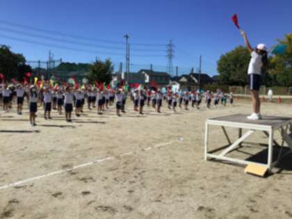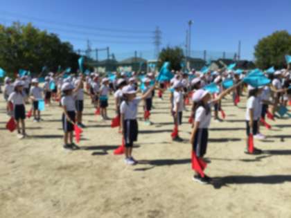 今日の練習は、ラジオ体操と旗体操が中心でした。ラジオ体操の際の足や手の動きを確認し、全校児童がそろってやってみました。旗体操は、腕を上げる角度や伸ばし方が揃うように練習をしました。初めて臨む1年生も、他の学年に刺激を受けながら頑張っていました。