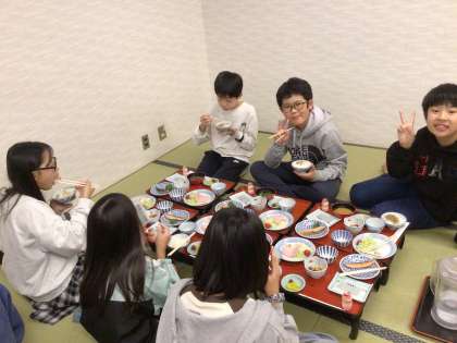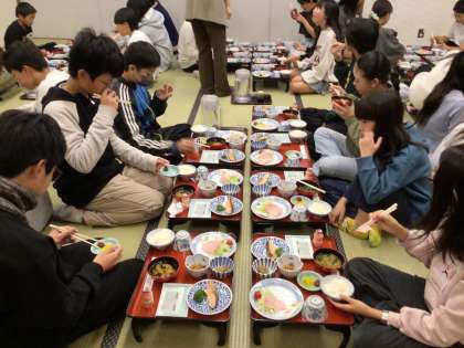11/1 6年生 修学旅行8 公開日 2025/11/01 更新日 2025/11/01 学校行事 夜の間に雨が上がりました。今日は傘も必要なさそうです。 少し眠そうな子もいますが、みんな元気です。 宿の方にもお世話になったお礼を伝え、朝ごはんをいただきました。 朝食後は部屋を片付け、荷物をまとめたら、奈良に向けて出発です。