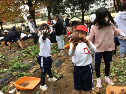 11/13 1・6年 サツマイモほり 公開日 2025/11/13 更新日 2025/11/13 校長室から 春に苗を植えたサツマイモの収穫をしました。 6年生に教えてもらいながらスコップや手で、夢中になって掘り返していました。思っていたよりも大きなサツマイモが育っていて、うれしそうに見せてくれました。 6年生は、収穫の後の片付けまでしっかりと行いました。さすがです。