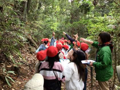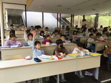 森の中を歩きながら、秋の植物や生き物についての秘密、関係性などのお話をしていただききました。赤い花には、アゲハチョウしか集まらないなど、初めて知ることもいっぱいで、驚きも多かったようです。後半は、室内で自分たちが興味をもって調べている植物に関しての質問をしました。今回学習したことは、学習発表会での植物についての報告につなげていきます。