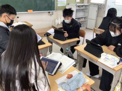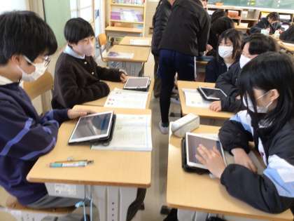 学校生活の中での課題を見つけ、解決策を周りの人に向かって提案するという学習をしています。「廊下を走らないようにするには」「朝すぐに教室に行くようにするには」「右側を通って歩くようにするには」など、自分たちが問題だと思うことをについて、班で解決策を話し合い、みんなにプレゼンテーションで提案します。今日は、解決方法を話し合い、まとまったところは提案のための資料を作成していました。来週の授業で、みんなの前で提案をする予定です。