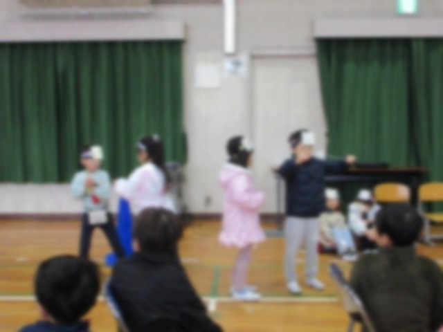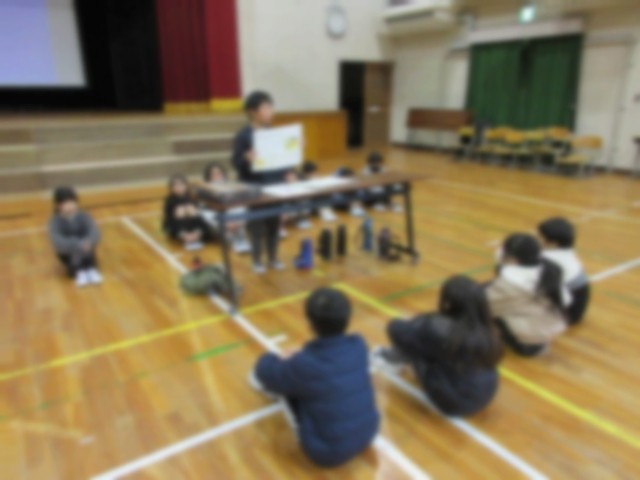 1・2年、3・4年のペア学年同士で、校内学習発表会を行いました。