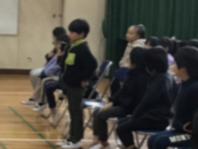 練習とは違って観客がいるためか、どの学年も最初は少し緊張していましたが、時間がたつにつれ自信をもって発表する様子がみられました。発表の後には、それぜれ見た感想やアドバイスを言い合いました。「聞きとりやすい声でよかった」「静かに移動ができていた」「クイズが楽しかった」などの感想をもらい、子どもたちのうれしそうでした。学習発表会当日に向けて、もっと上手に発表したいという気持ちが高まったようです。