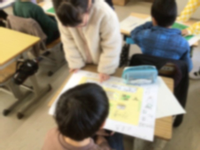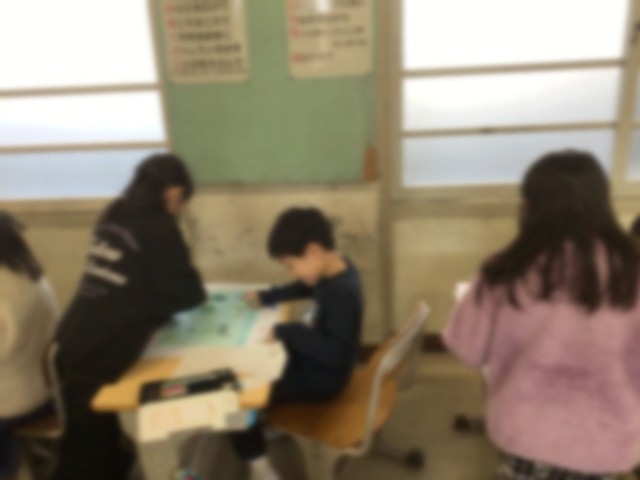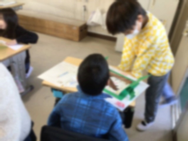 2年生では、図工の授業で「まどをあけたら」の学習を行っています。窓を開けて見える世界を考えます。小さな窓がたくさんある子、窓の形を工夫している子など、一人一人が素敵な作品を作りました。今日は、お互いの作品を鑑賞する時間です。見る子は、作った子にいろいろ質問したり、素敵なところをほめたりしながら鑑賞しました。