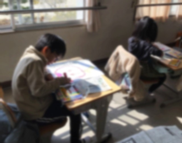 大きな用紙いっぱいに絵を描いて、夢中になって黙々と色を付けていました。何を作っているのかを聞いてみると、「凧の絵だよ」と教えてくれました。1年生は、来週、生活科の学習で凧あげをする予定です。講師の先生に来ていただいて、一緒に凧を作って自分のものを揚げます。そのための絵を一生懸命に描いているところでした。1年生のお気に入りの絵の凧が、空に揚がるのが楽しみです。どうか、凧あげ日和になりますように。
