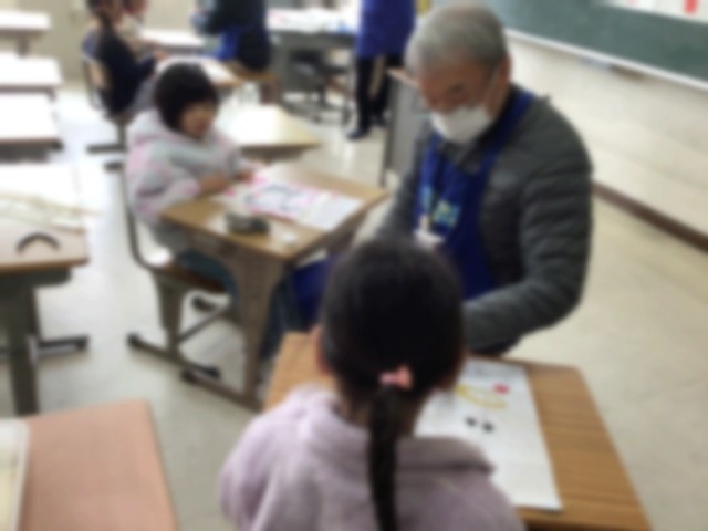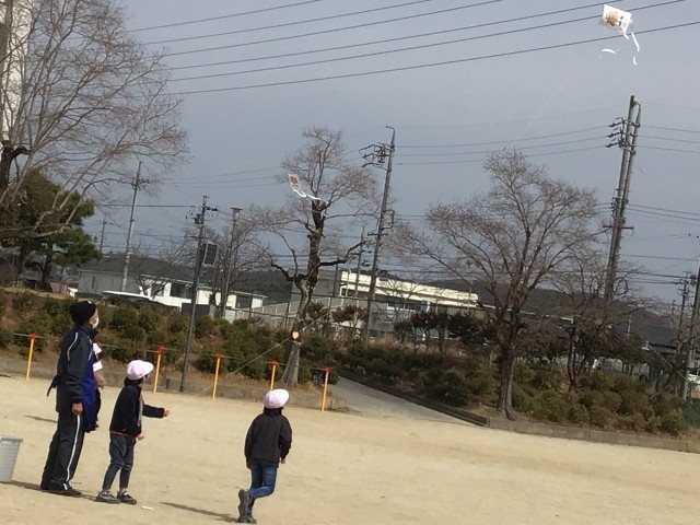 市の「ものづくりサポーター」さんに来ていただき、和凧づくりを行いました。事前に自分のお気に入りの絵を描いた和紙に竹を組んで貼り付け、和凧をつくりました。サポーターさんがグループについてくださるので、説明を聞きながら、それぞれ凧を完成させることができました。凧作りのあとは、サポーターさんがもってきてくれた和凧をお借りして、凧あげの練習をしました。初めのうちは風も弱く、なかなか揚がりませんでしたが、交代しながら何度もやるうちに風も出てきて、かなり高く揚げることができました。子どもたちも、大喜びでした。完成した自分の凧は、接着した部分がしっかり乾いてから、別の日に揚げる予定です。