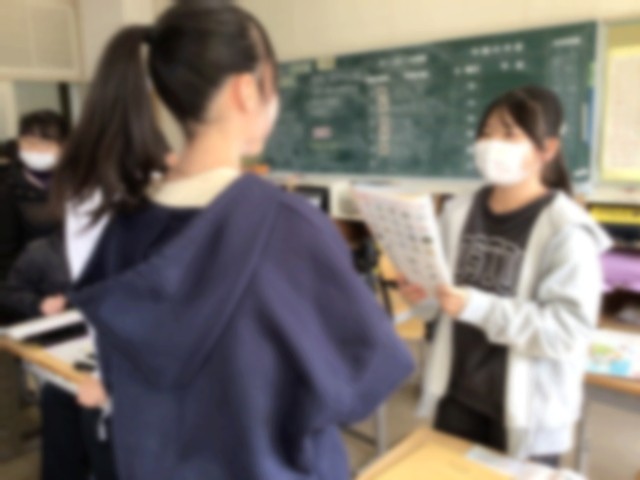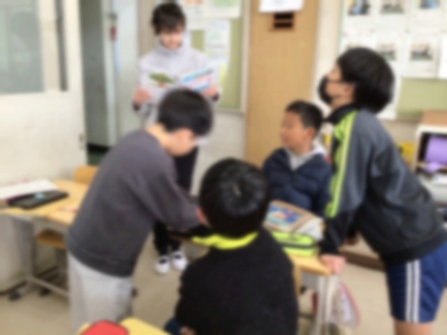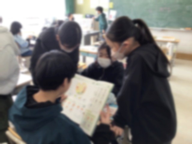 英語を使って、あこがれの人について紹介し合いました。これまでに学習した英単語を調べながら、ペアやグループの相手に何とか伝えようと、がんばっていました。ときには、グループの子が単語や言い方を教えてくれ、助けてもらいながら学習に取り組んでいました。