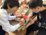 「のこぎり ぎこぎこ」 4年生は、のこぎりやかなづちを使って木の板を切ったり組み...