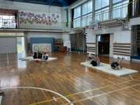 入学式会場チームです。新1年生が座る木の椅子は、図工室から運び入れました。パイプ...
