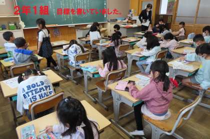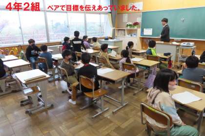 1時限目は、多くの学級で今年の目標を書いたり、仲間に伝えたりしていました。