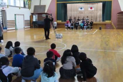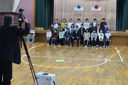 体育館で学級写真の撮影をしました。今日撮影できなかった学級は、13日に撮影します。
