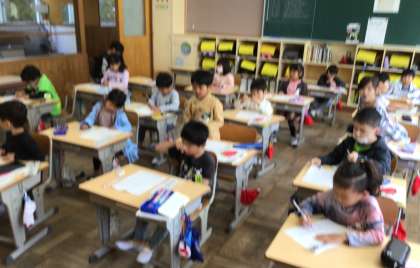 先日学習した鉛筆の持ち方を思い出しながら、紙をしっかり押さえて書きました。