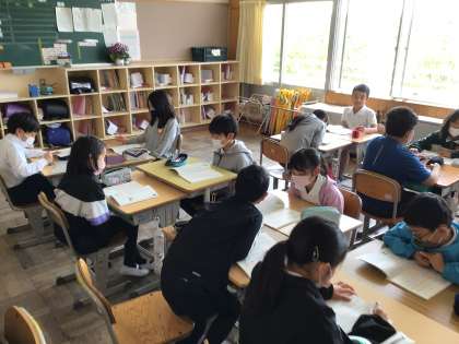 国語の初めの単元は「もしもどうしたい」という題材で、近くの人と話し合う活動です。早速和気あいあいと話し合っていました。