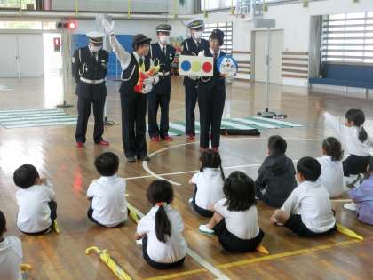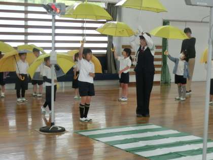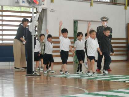 4/19 1年生交通安全教室 公開日 2023/04/19 更新日 2023/04/19 お知らせ 5名の交通指導員さんにお越しいただき、1年生交通安全教室を開催しました。「ふざけない・とびださない・自分の目でたしかめる」の3つの約束を守って、交通事故にあわないようにしましょう。