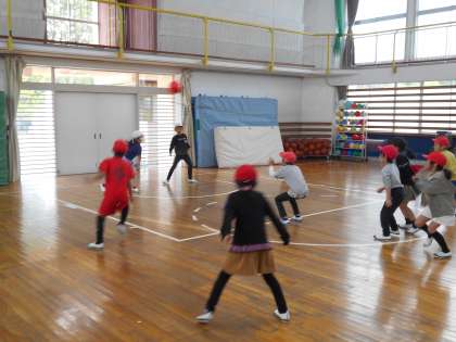 4月生まれの子の誕生日会を行いました。誕生日の子への質問タイムの後、みんなでドッジボールをして楽しみました。
