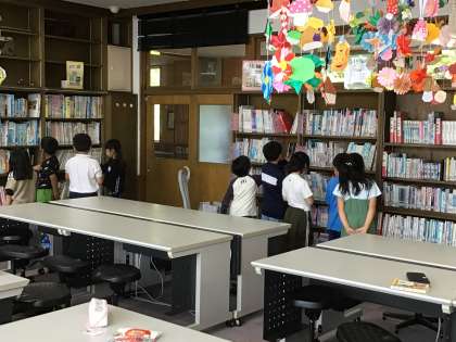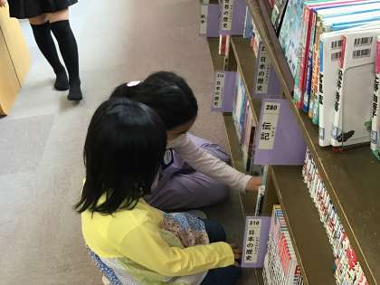 図書館の利用説明の授業を受けました。分類について学び、年間で何冊読むか、目標を決めました。