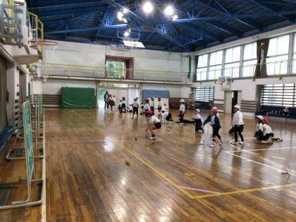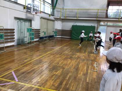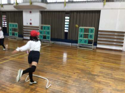 体育の授業でストラックアウトをしました。とても真剣に的を狙って投げていました。