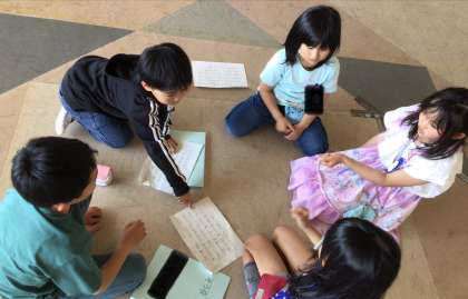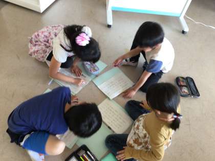総合で藤岡歌舞伎について学習しています。今日は、白波五人男のセリフをグループに分かれて練習しました。