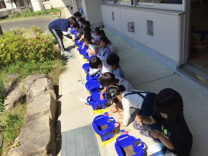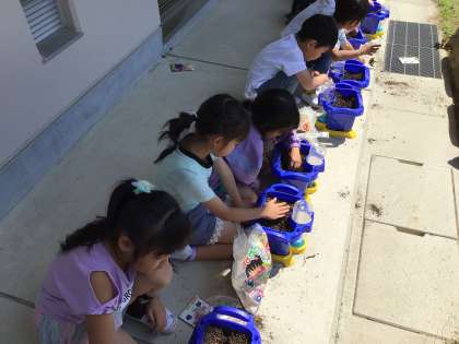 朝顔の栽培が始まりました。肥料を混ぜたり、土をふかふかにしたりして、朝顔が過ごしやすい環境作りを工夫しました。