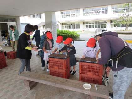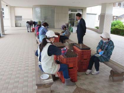 5/15 秋花壇の種まき 公開日 2023/05/15 更新日 2023/05/15 特色ある学校づくり推進事業 花ボランティアの皆さんに、サルビアやマリーゴールドなど、秋花壇の種まきをしていただきました。 午前業間には、環境委員や1年生が手伝い2時間ほどで終了しました。 特色ある学校づくり