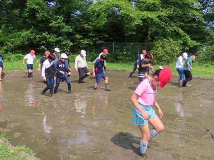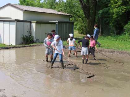 5/22 5年お米作り −代かき− 公開日 2023/05/22 更新日 2023/05/22 お知らせ 5年生が、先週の田おこしに続いて代かきをしました。みんなで歩いたりゲームをしたりして田んぼの土を混ぜました。最後はしっかり表面をならし、来週の田植えに備えました。