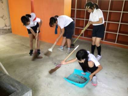更衣室やシャワー、ビート板など置いてあるあたりを掃除しました。