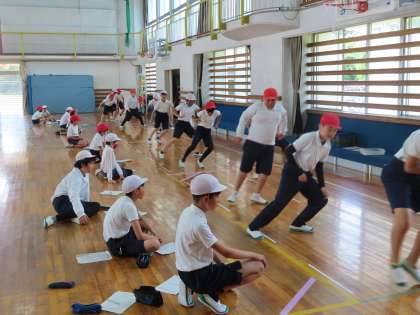 測定種目は、1〜3年生は50m走、ソフトボール投げ、立ち幅跳びの3種目。4年生は、プラス反復横跳び、長座体前屈の5種目。5,6年生は、プラス上体起こし、握力、シャトルランの8種目です。
