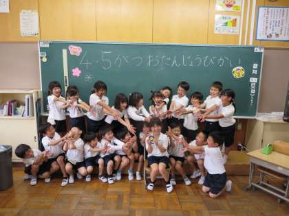 4・5月の誕生日会をしました。歌を歌ったり、椅子取りゲームをしたりして遊びました。