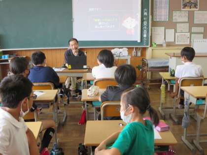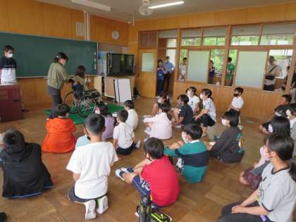今年度も豊田市社会福祉協議会にお手伝いをいただき、今日はユートピア若宮から講師をお迎えして、1組が「障害」を理解するための講義を、2組が車いす体験をしました。明後日は、クラスを変えて行います。
