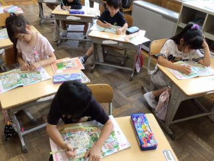 道徳で「なにをしているのかな」の授業をしました。