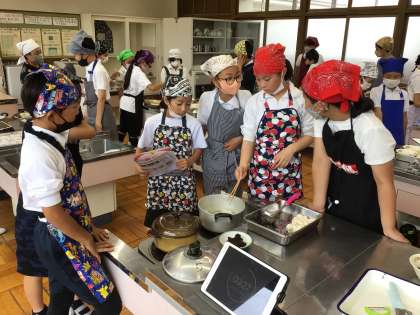 6/14 調理実習の様子 公開日 2023/06/14 更新日 2023/06/14 第5学年の様子 今日は、みそ汁作り、ごはんをたきました。 火加減た煮干しの下処理など、細かい作業もがんばりました。 どの班も鍋を焦がすことなく、おこげができたご飯、みそ汁ができ、美味しくいただきました。 煮干しの下処理で出汁がこんなに違う!と感じました。 5年