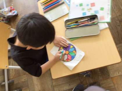 ぬりえをがんばっています 公開日 2023/06/14 更新日 2023/06/14 第1学年の様子 書写の時間や、休み時間に好きな模様を選び、取り組んでいます。「濃く、遠くから見ても色が綺麗に見えるようにがんばって色を塗ろう」と指導しています。 4月初期に比べ、線対象や点対象、配色を工夫する子が増えています。廊下に掲示してますので、ぜひご覧ください。 1年