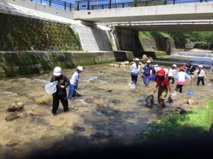 天気に恵まれ、川遊びに行くことができました。川には、エビやヤゴがたくさんいて、カワムツやヨシノボリも見つけることができました。