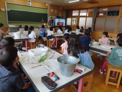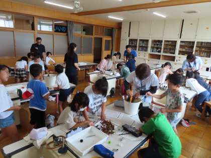 今日は、階段坂周辺の森の森の中の土を採取し、理科に移動して土の中の生き物や微生物の働きについて学習しました。